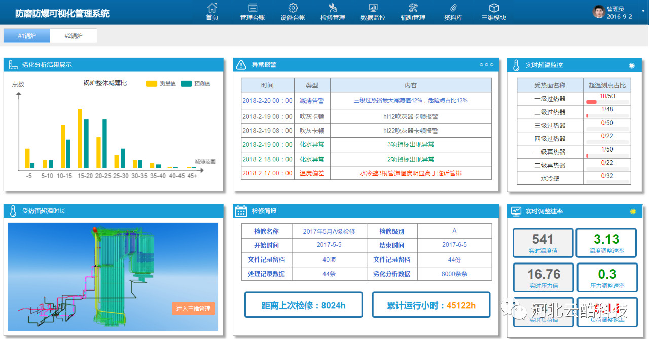 云酷科技多年來專注于電廠安全管理業(yè)務,針對鍋爐安全問題所研發(fā)的三維可視化鍋爐防磨防爆管理系統(tǒng)充分結(jié)合了先進的科技技術(shù)與電廠實際經(jīng)驗,為鍋爐安全管理、四管泄爆問題提供管理工具。